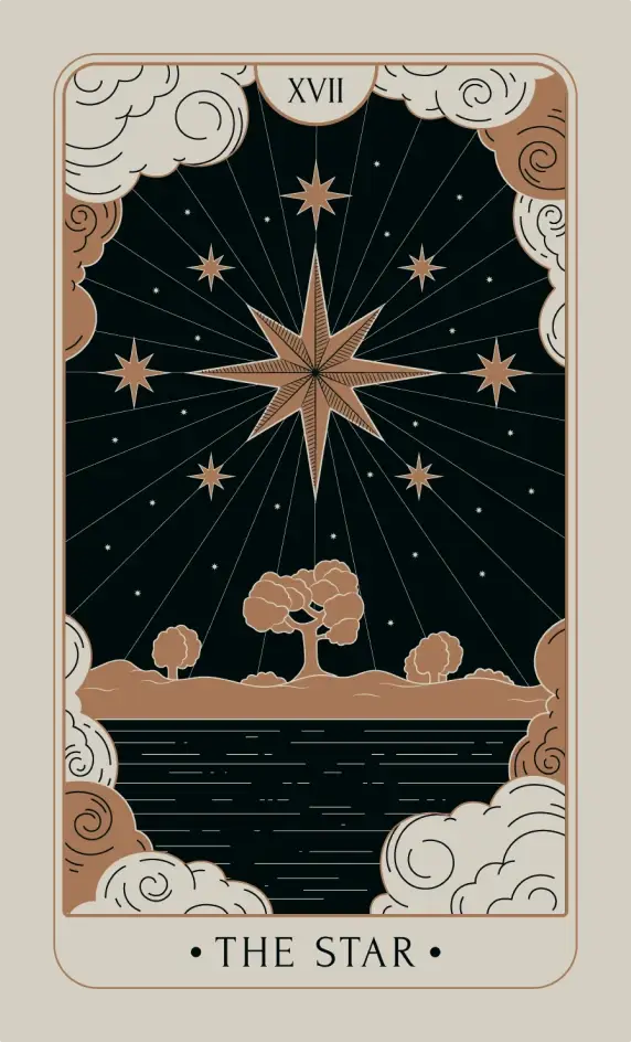 The Star Tarot card represents hope, inspiration, and spiritual awakening. It signifies that after a period of struggle or difficulty, you are now moving towards a brighter and more positive phase in your life. This card encourages you to trust in the universe and believe in your inner guidance. It may also indicate a need to focus on self-care and nurture your emotional and spiritual well-being. The Star serves as a reminder that you have the strength and resilience to overcome challenges and emerge victorious.